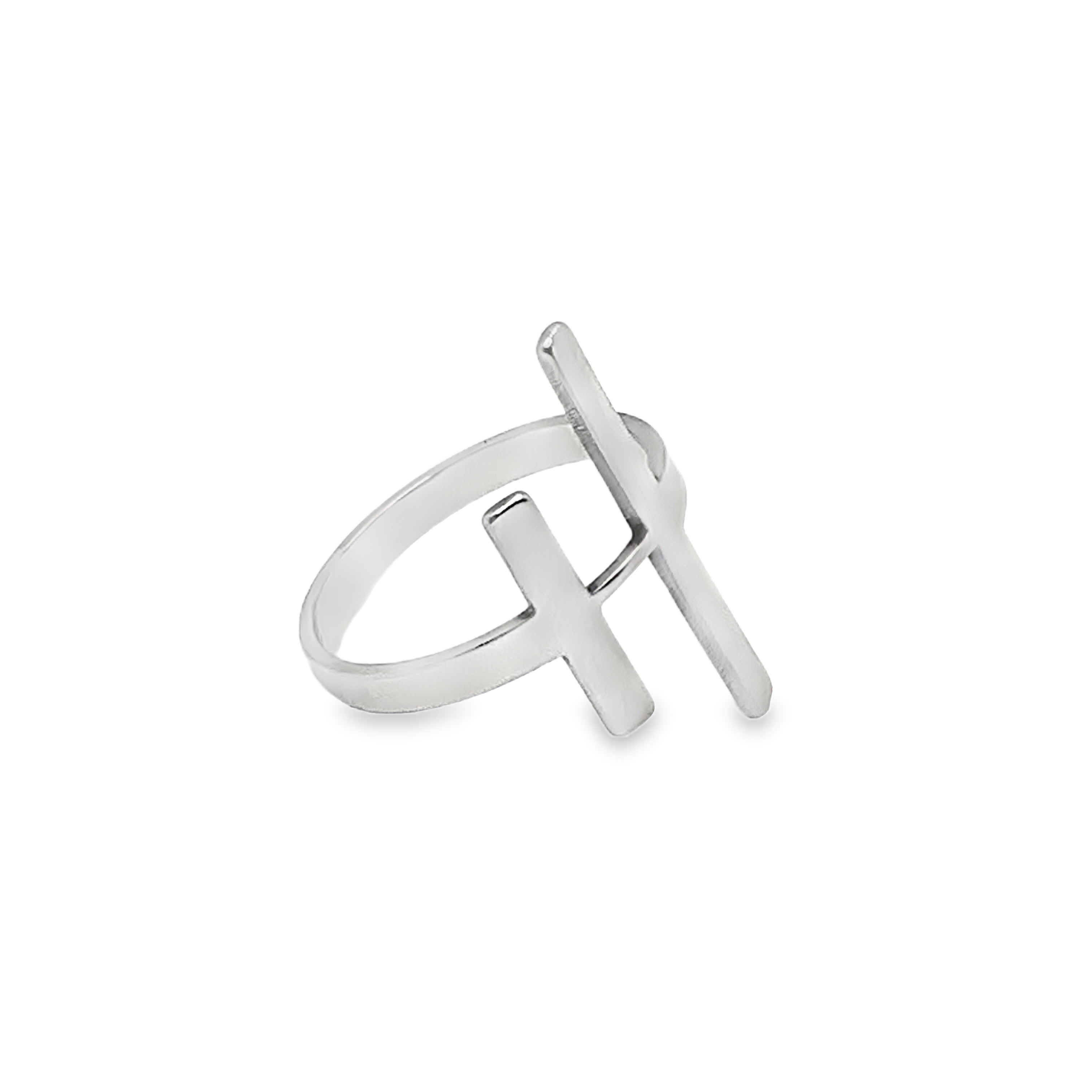 Ten nowoczesny pierścionek wykonany jest z eleganckiego srebra, wykończonego lśniącą powłoką z białego złota. Minimalistyczny design z dwoma zachodzącymi na siebie obrączkami tworzy szykowny, nowoczesny wygląd. Stylowy i wszechstronny dodatek, który doda odrobiny dyskretnej elegancji każdej stylizacji.