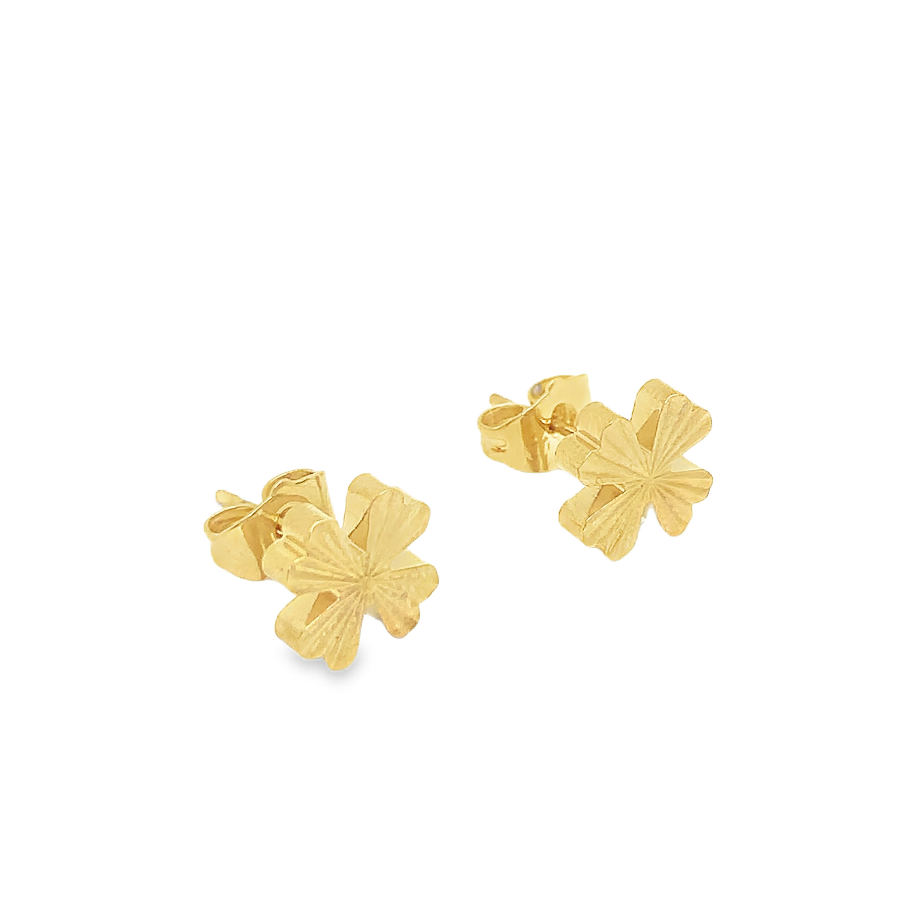Kolczyki sztyfty z 14-karatowego żółtego złota z czterolistną koniczyną