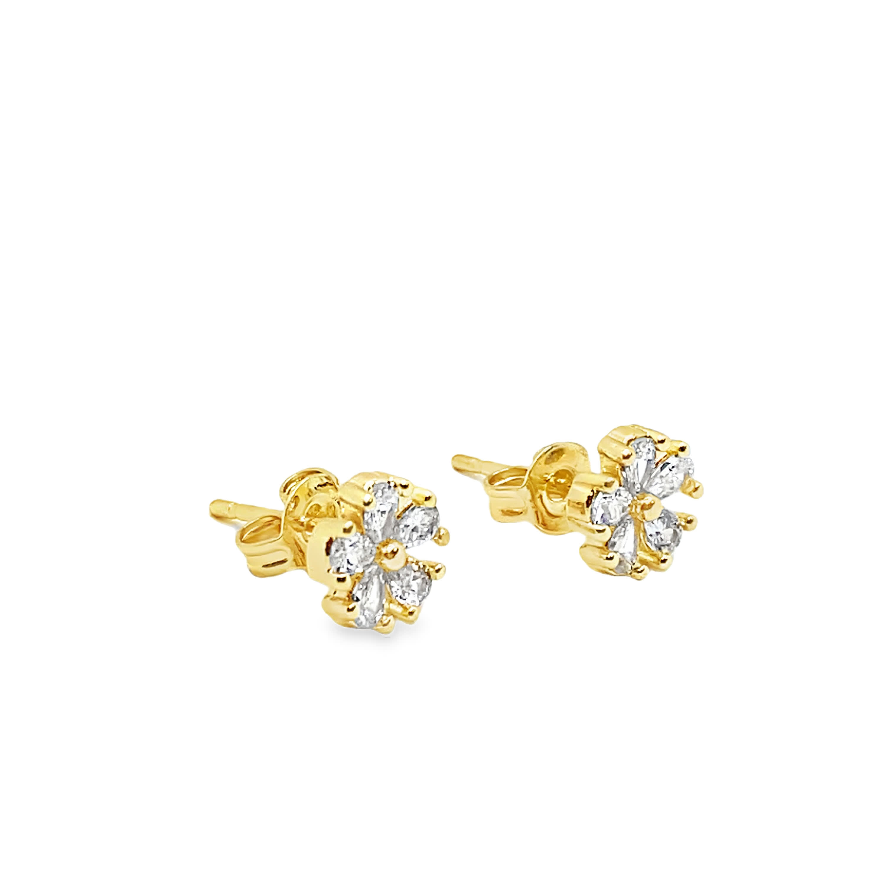 Diamentowe kolczyki sztyfty w kształcie kwiatów z żółtego złota