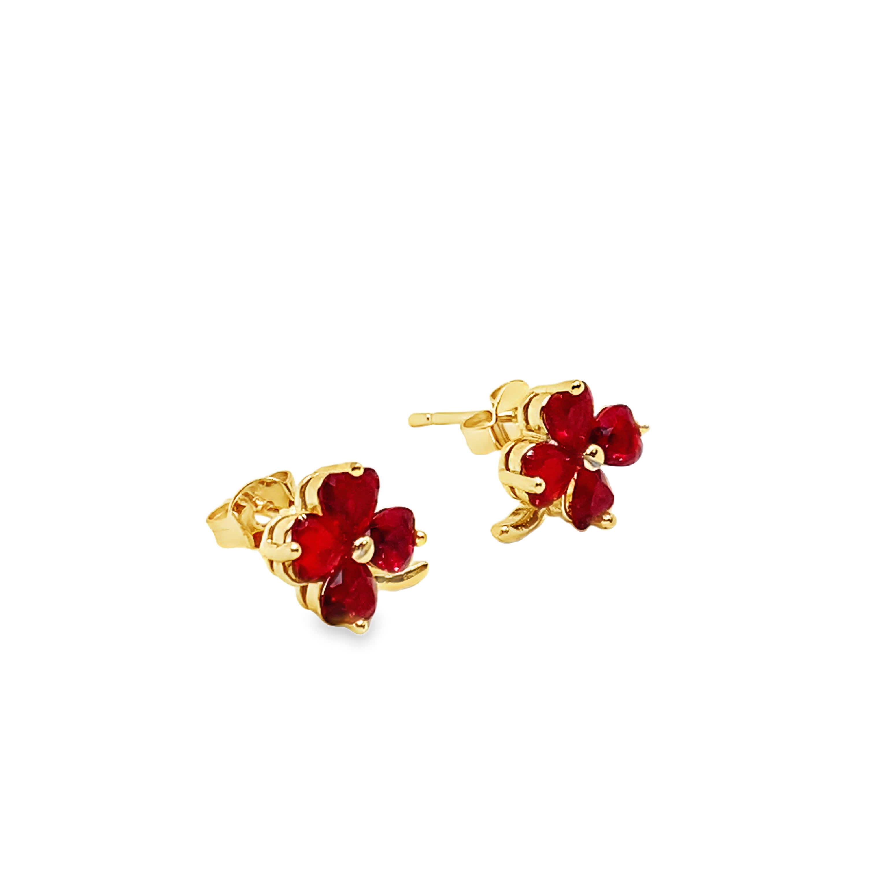 Kolczyki sztyfty z żółtego złota z rubinami w kształcie serca