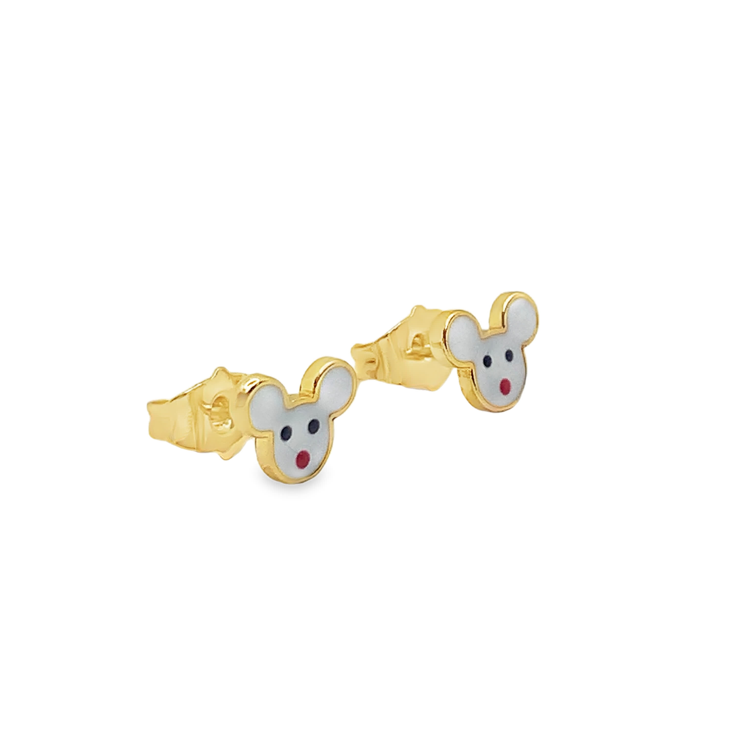 Te zabawne kolczyki sztyfty mają uroczy wzór myszy, wykonany z promiennego żółtego złota. Misterne detale i kapryśny urok sprawiają, że są one wspaniałym dodatkiem do każdej kolekcji biżuterii, idealnym do dodania odrobiny zabawy i elegancji do codziennego stylu