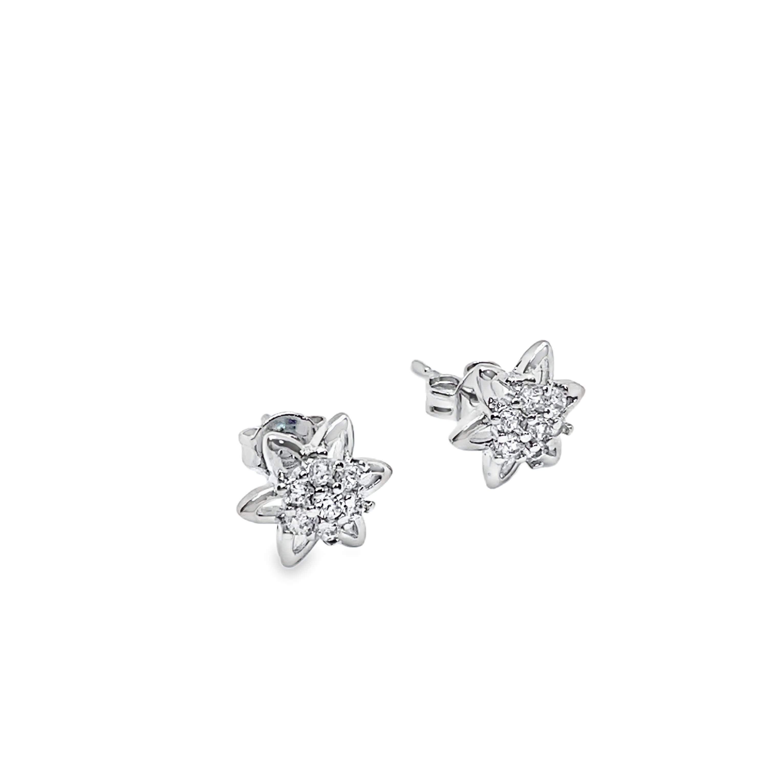 Elevate your everyday style with these exquisite white gold stud earrings. Delicately crafted in silver, these earrings feature a cluster of round brilliant cut diamonds, creating a dazzling floral design. Their versatile design ensures they add a touch of elegance to any ensemble, perfect for day or night.