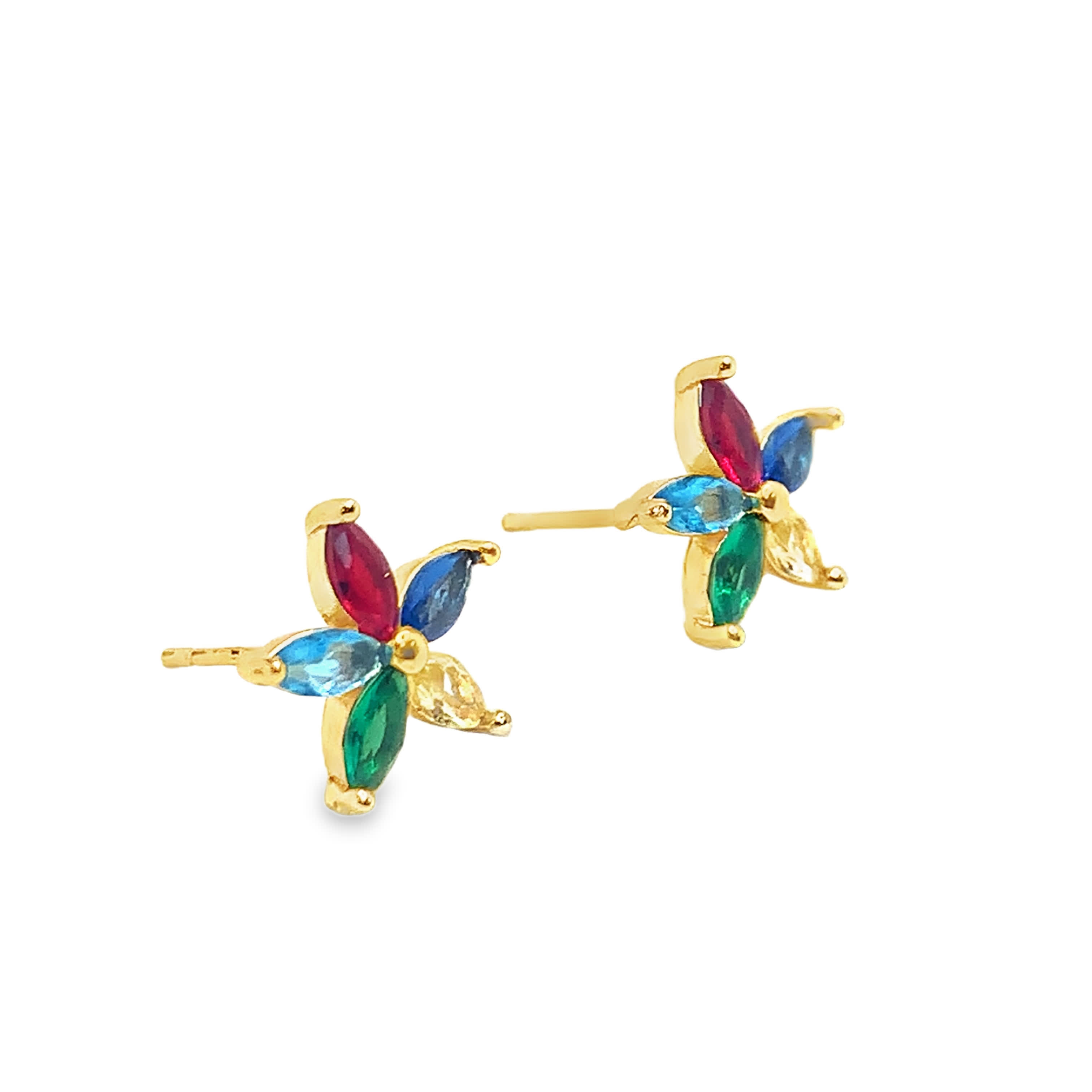 Elevate your style with these exquisite yellow gold stud earrings, meticulously crafted with a floral motif. Each earring features a captivating oval-shaped crystal with a cabochon cut. These earrings offer a brilliant sparkle and are perfect for adding a touch of sophistication to any ensemble.