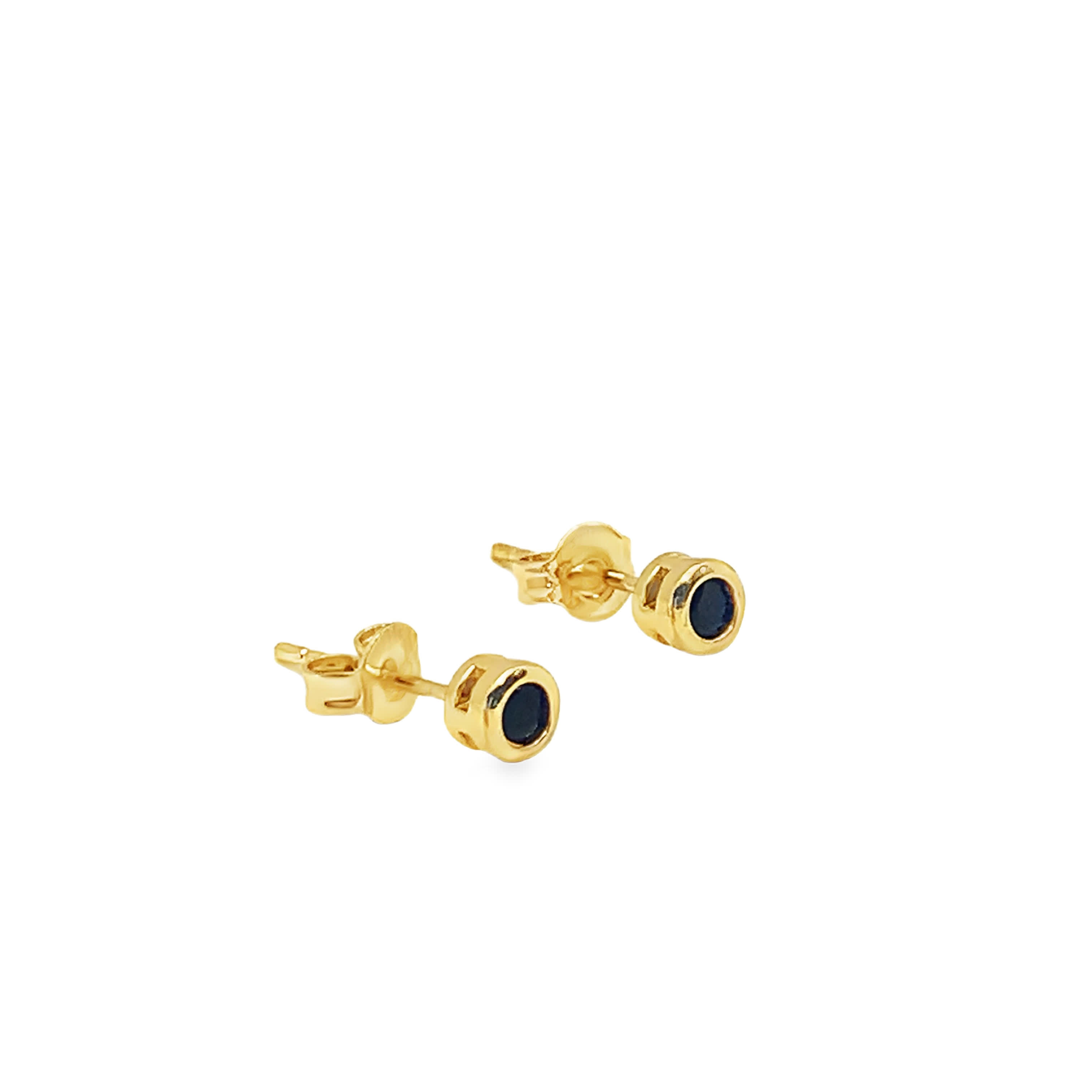 Yellow Gold Stud Earrings with Deep Blue Sapphire Cabochons
