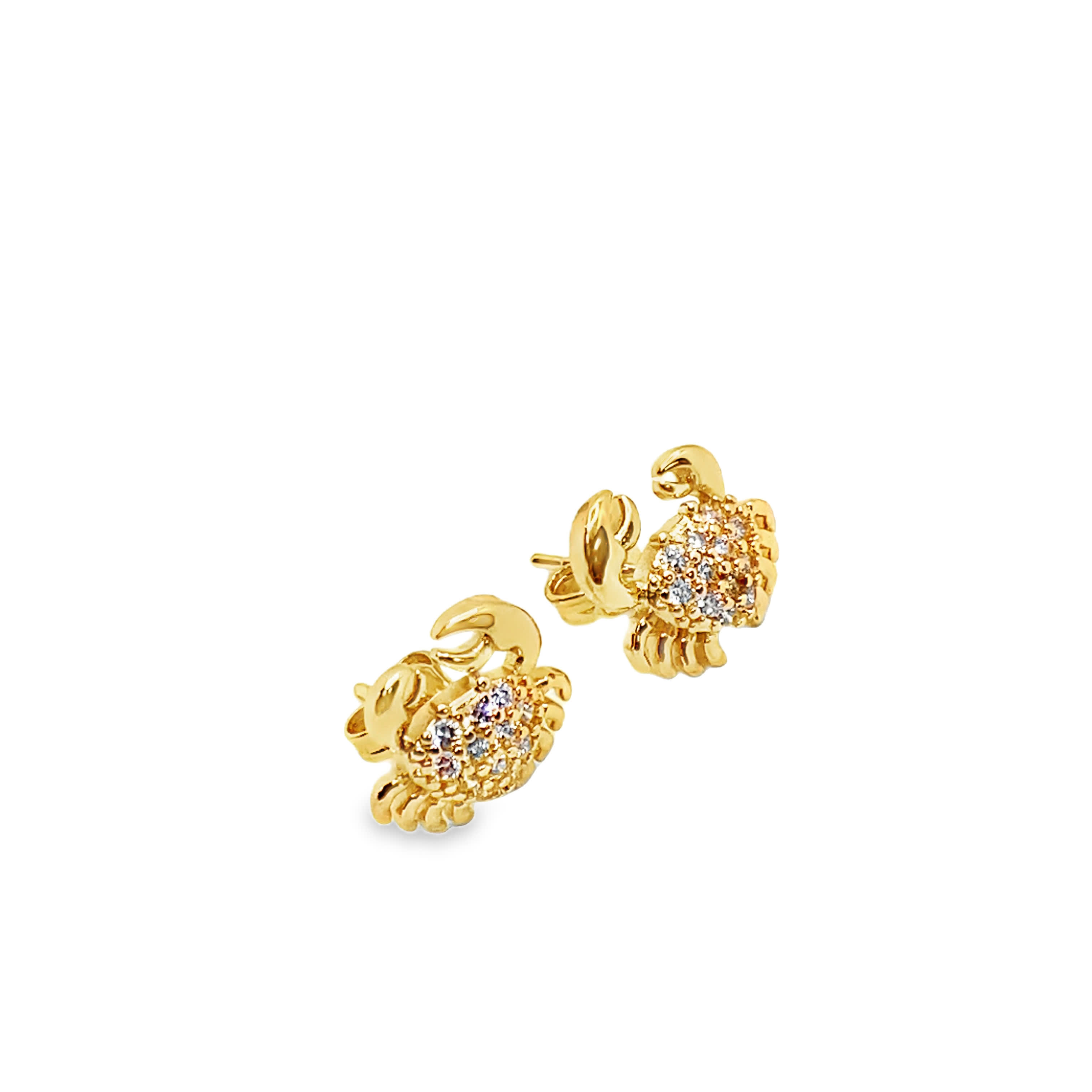 Yellow Gold Crab Stud Earrings with Diamond Accents