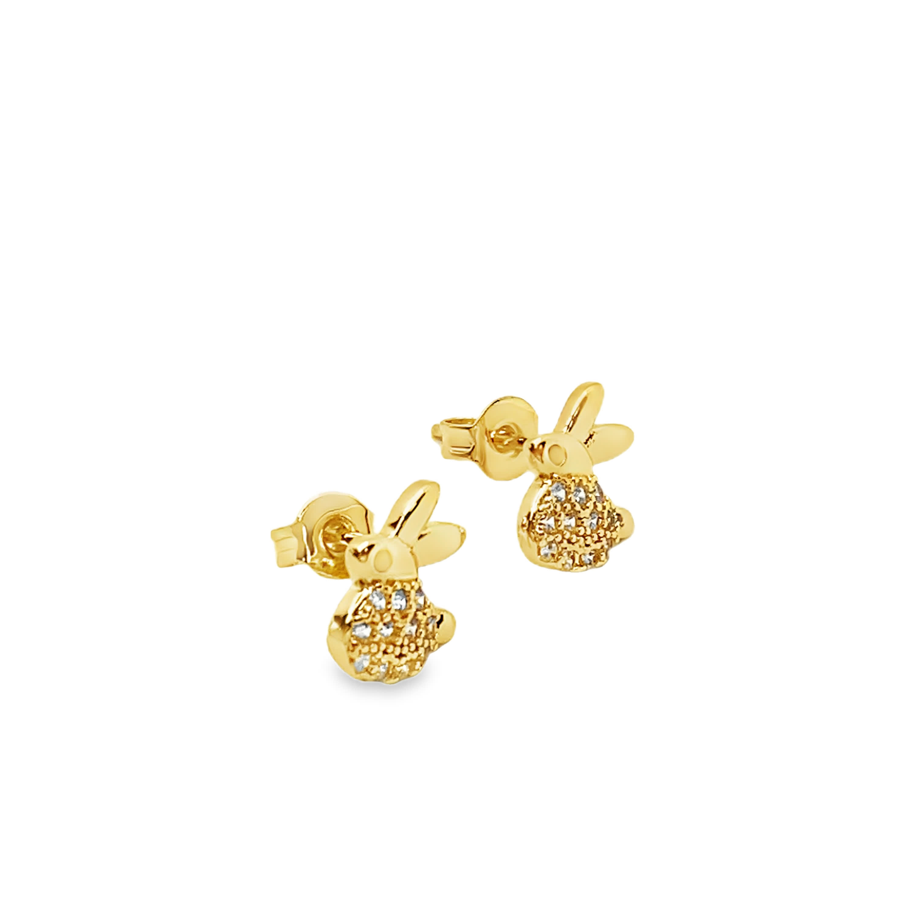 Embrace playful elegance with these charming bunny stud earrings, crafted in radiant yellow gold. These adorable earrings feature round brilliant cut diamonds set in a pavé style, adding a touch of sparkle and whimsy to any look. A delightful choice for everyday wear, these stud earrings bring joy and sophistication to your jewelry collection.