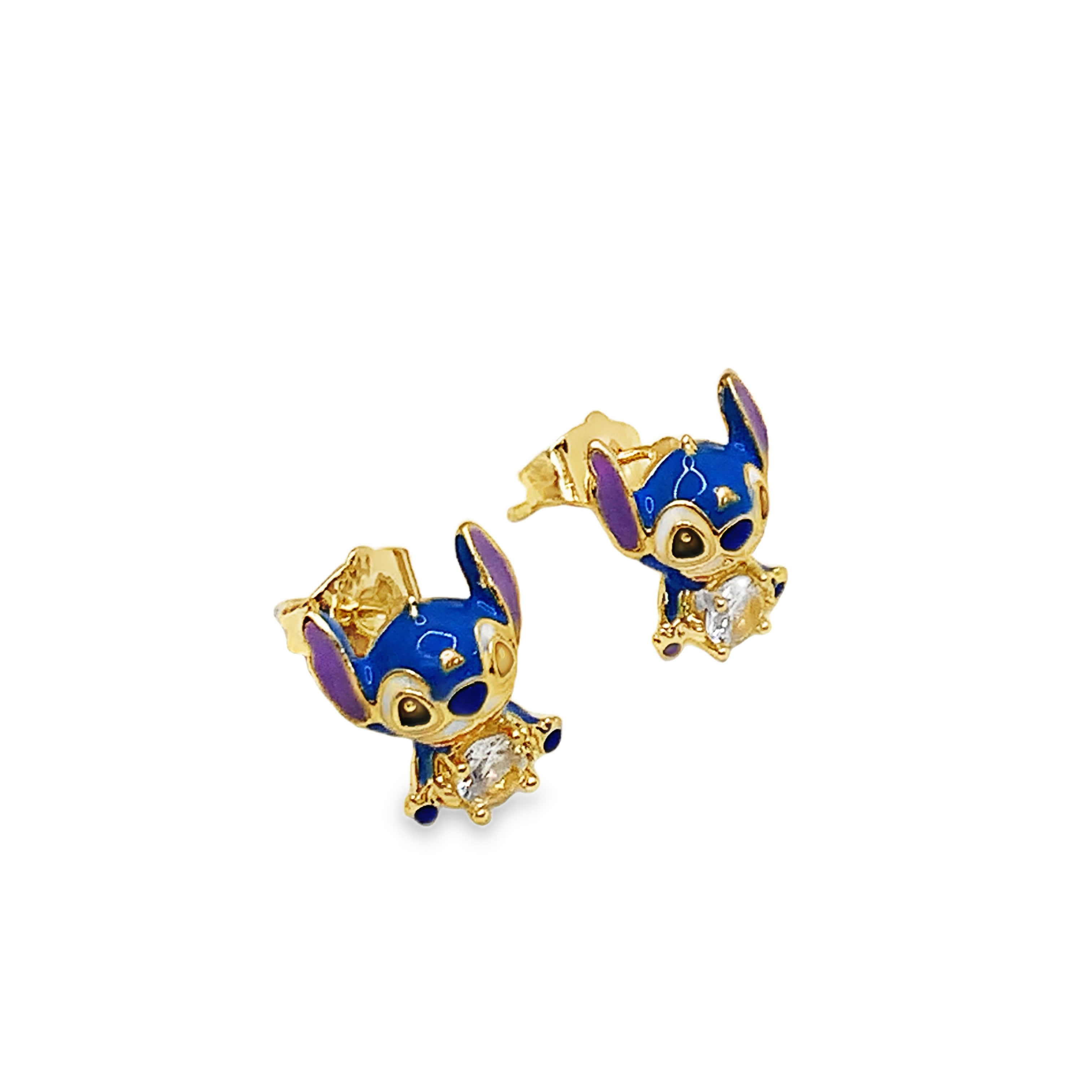 Disney Character Stud Earrings with Round Brilliant Cut Diamonds in Yellow Gold