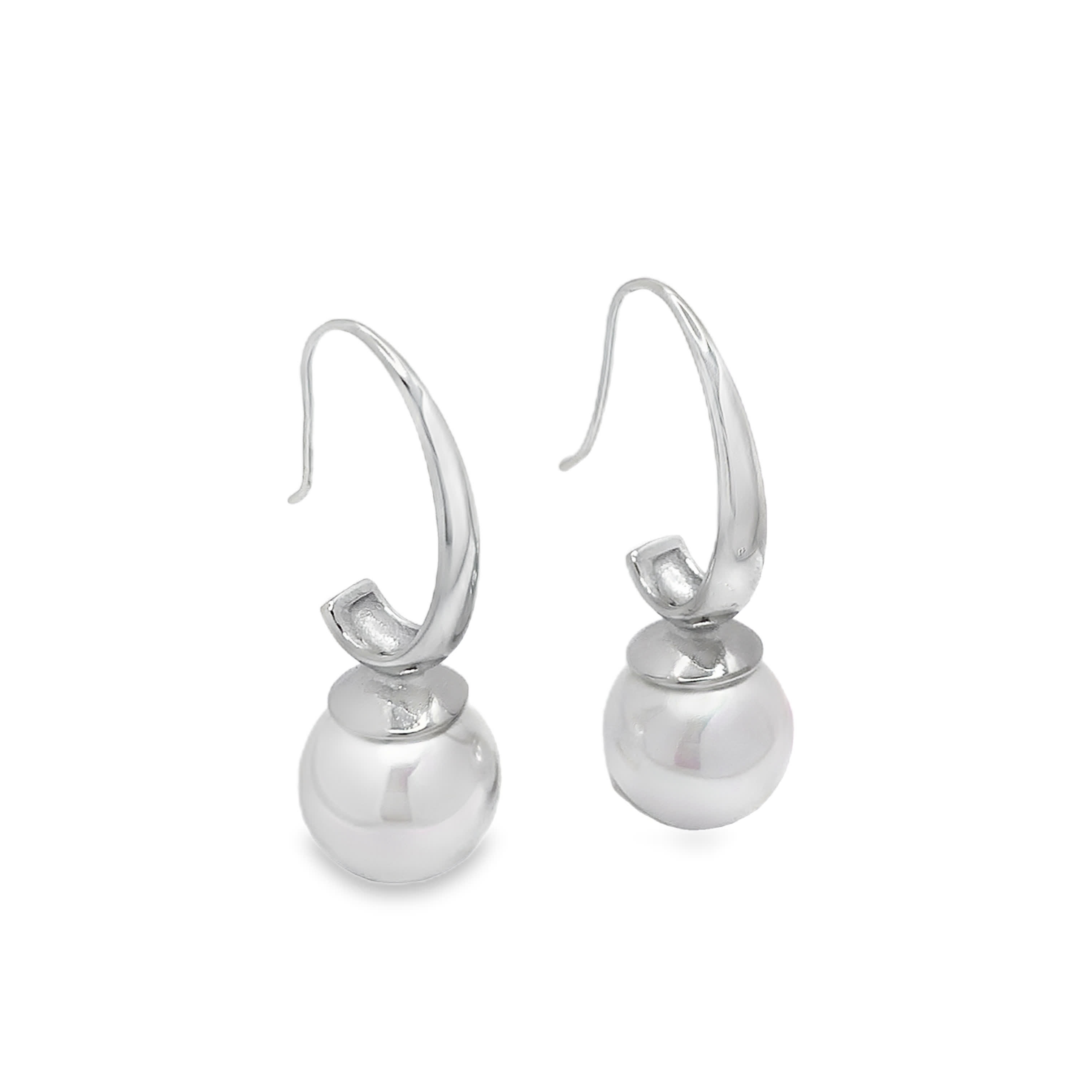 Elevate your style with these elegant sterling silver drop earrings, featuring perfectly round pearls with a smooth cabochon cut. Their timeless design and lustrous appeal make them an ideal accessory for any occasion. These pearl earrings exude understated sophistication.