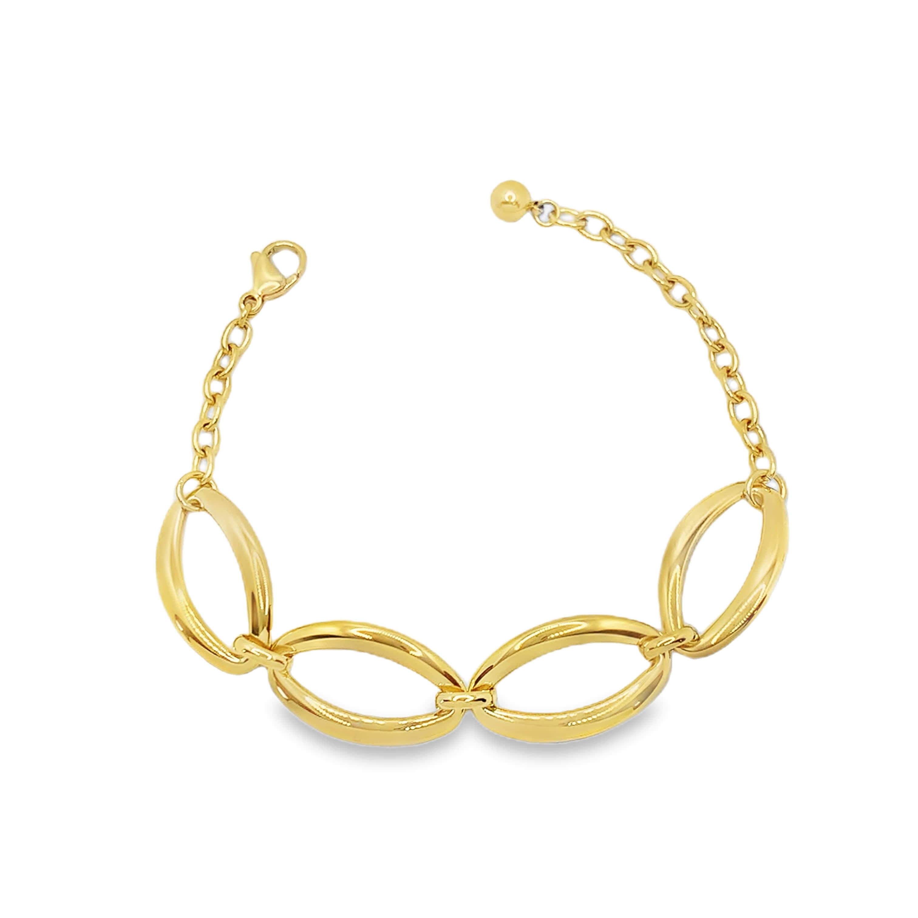 Elevate your style with this captivating yellow gold chain bracelet. The bracelet features gracefully interconnected, elongated oval links, creating a visually appealing and fluid design. The chain is crafted in lustrous yellow gold, ensuring a luxurious and timeless piece suitable for both everyday wear and special occasions.