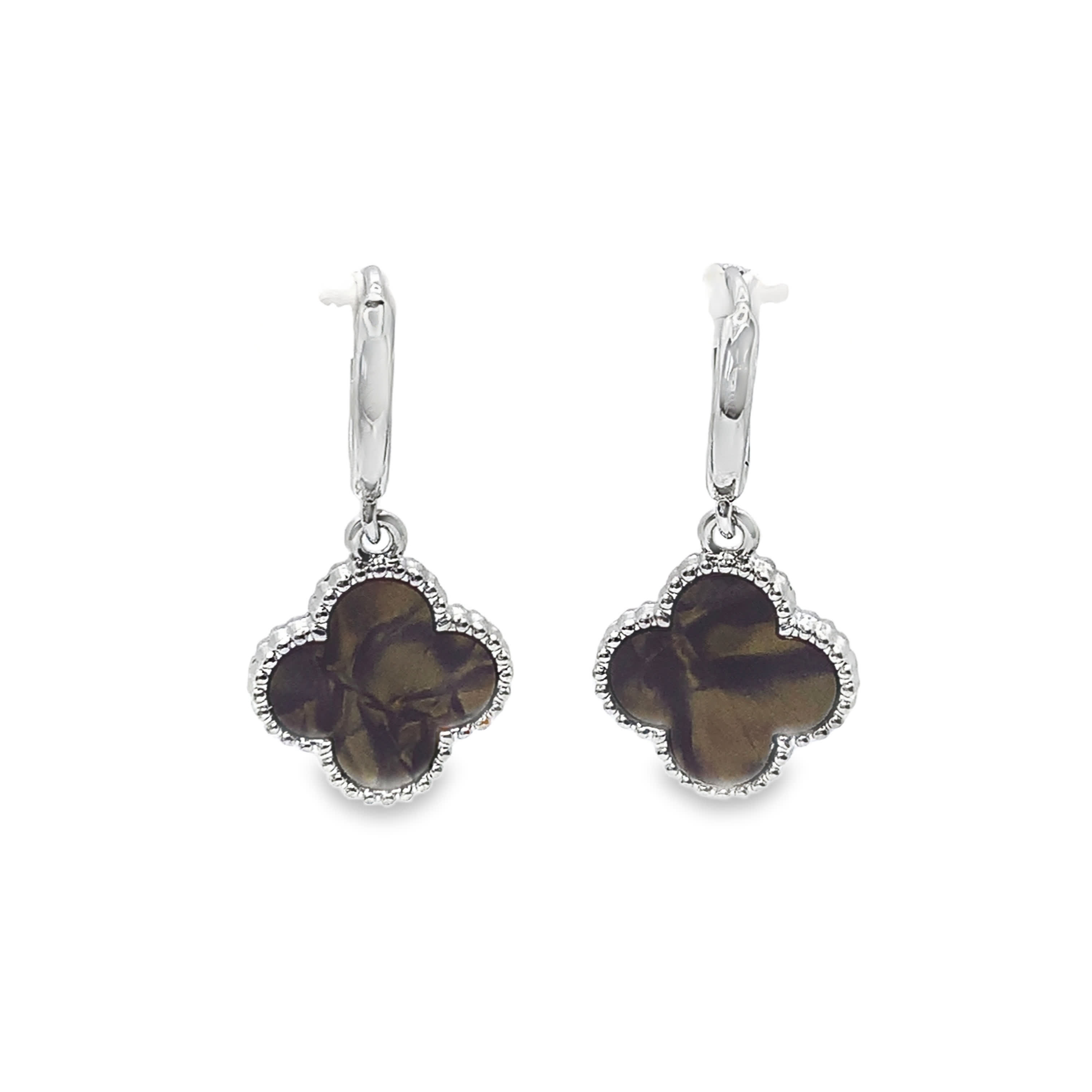Kolczyki koła z metalu z zawieszką koniczynki i kamieniem