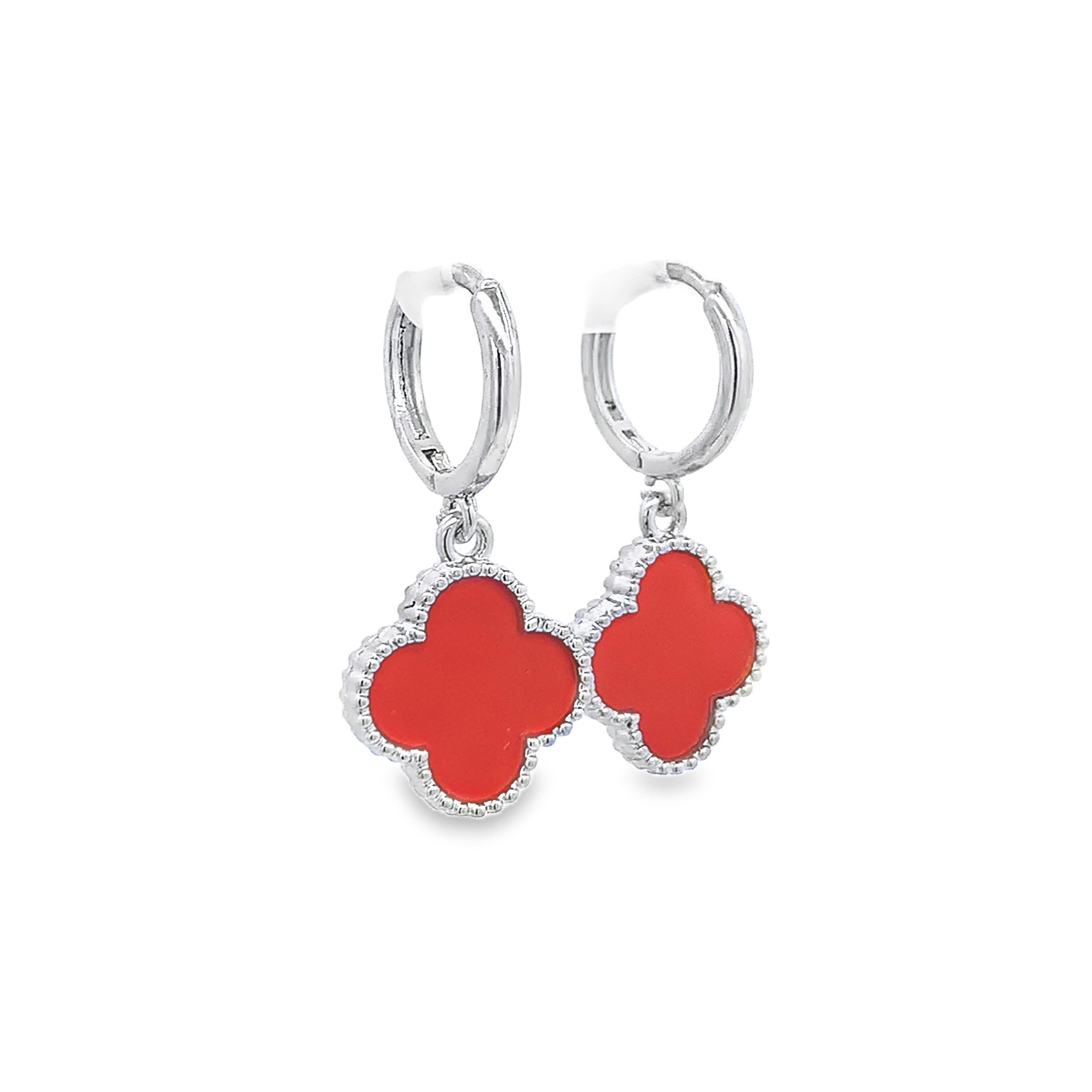 Adorn your ears with these exquisite white gold dangle earrings, showcasing vivid red coral cabochons. The earrings feature meticulously crafted silver settings that accentuate the lustrous coral. These earrings combine classic elegance with a pop of vibrant color, making them a striking addition to any jewelry collection.