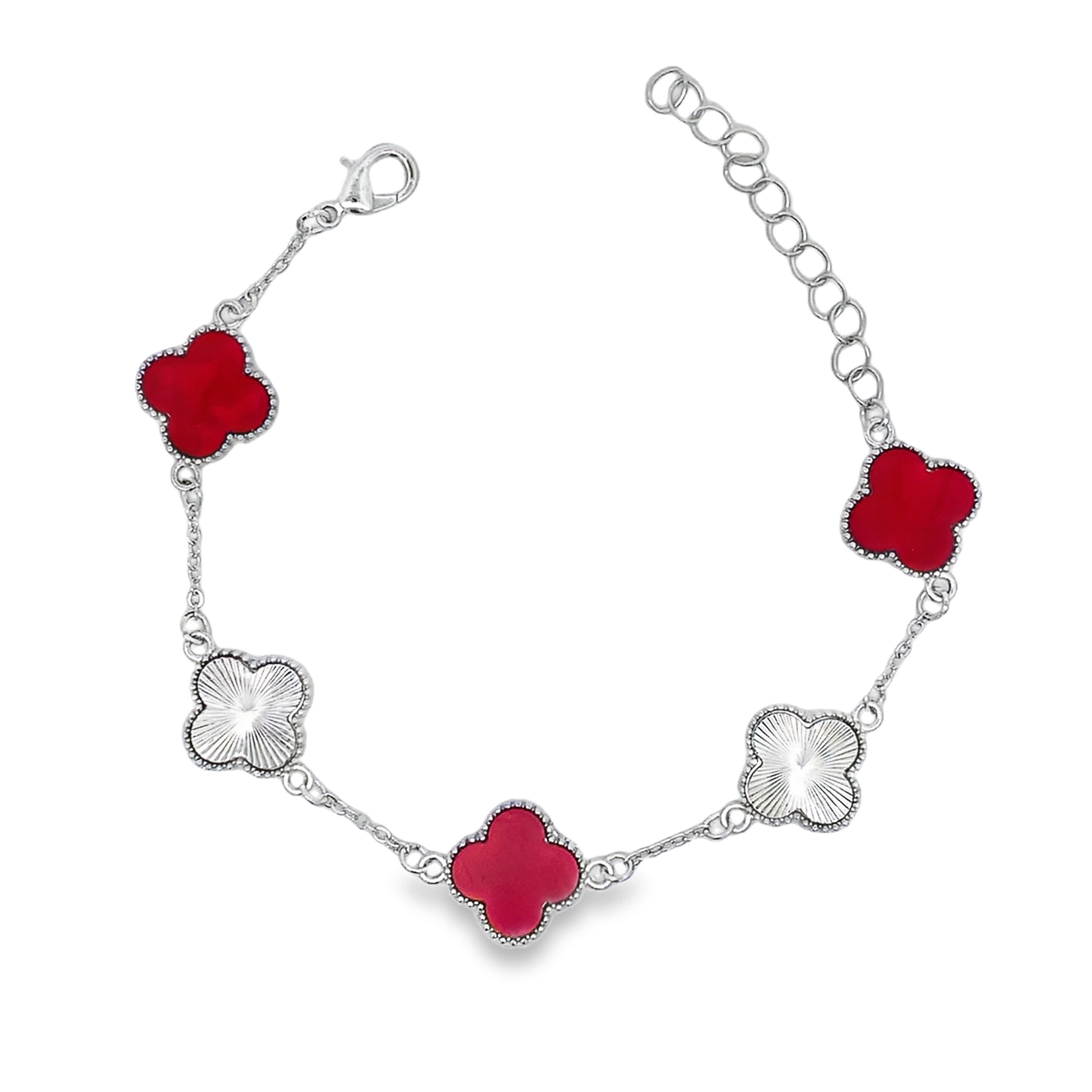 Bransoletka łańcuszkowa z metalu w kolorze białym z motywem czterolistnym