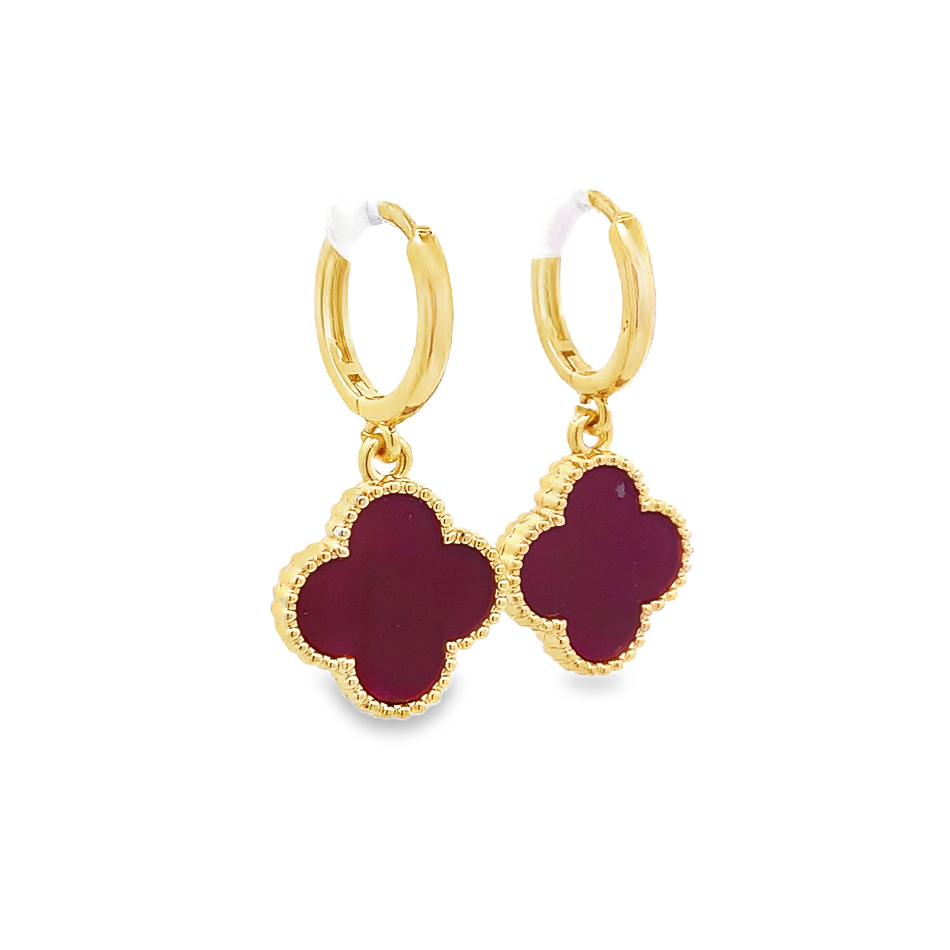 Elevate your style with these charming dangle earrings, crafted in radiant yellow gold. Each earring features a round, cabochon-cut agate gemstone displaying a rich, dark red hue. The agate\\\'s opaque transparency and VS clarity enhances the design, perfect for adding a pop of color to any ensemble.