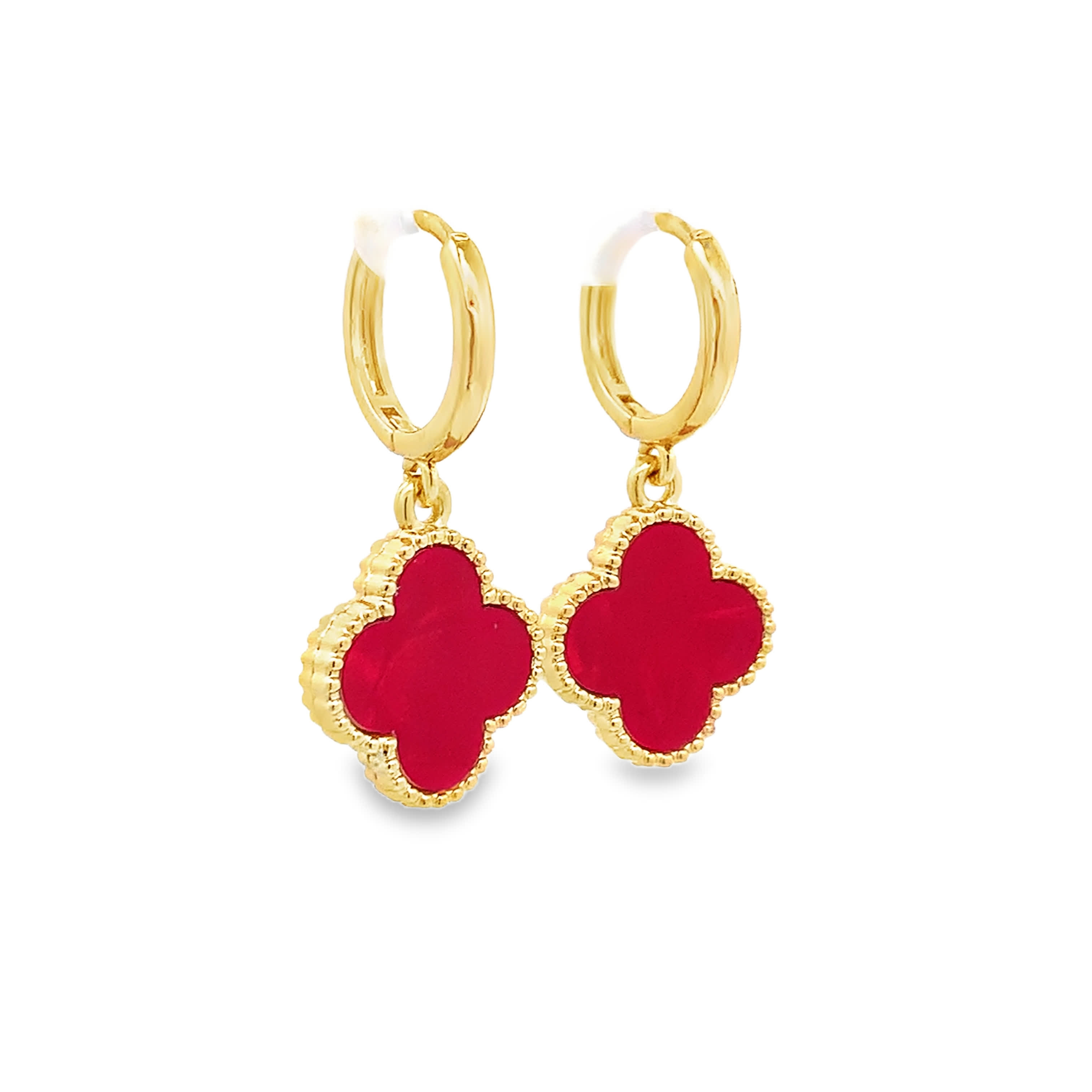Elevate your style with these charming 14k yellow gold dangle earrings. These earrings feature a graceful clover-shaped design, perfect for adding a touch of luck and elegance to any ensemble. These earrings are suspended from elegant hoops for a graceful drop. A must-have addition to your jewelry collection.