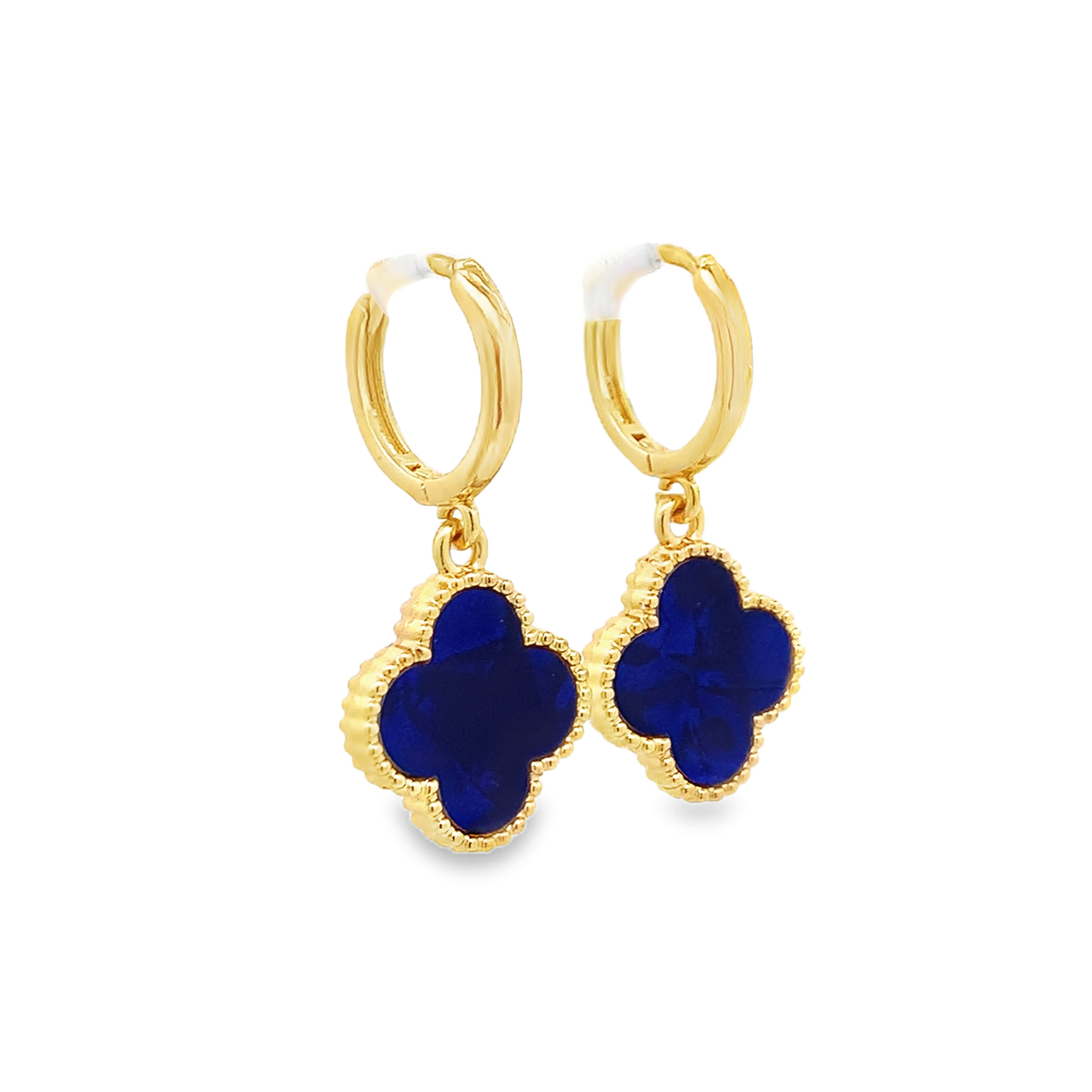 Elevate your style with these captivating dangle earrings, crafted from radiant yellow gold. The earrings feature round cabochon-cut lapis lazuli, known for its deep blue hue. The lapis lazuli gemstones add a touch of sophistication, making these earrings a versatile accessory for both casual and formal occasions.