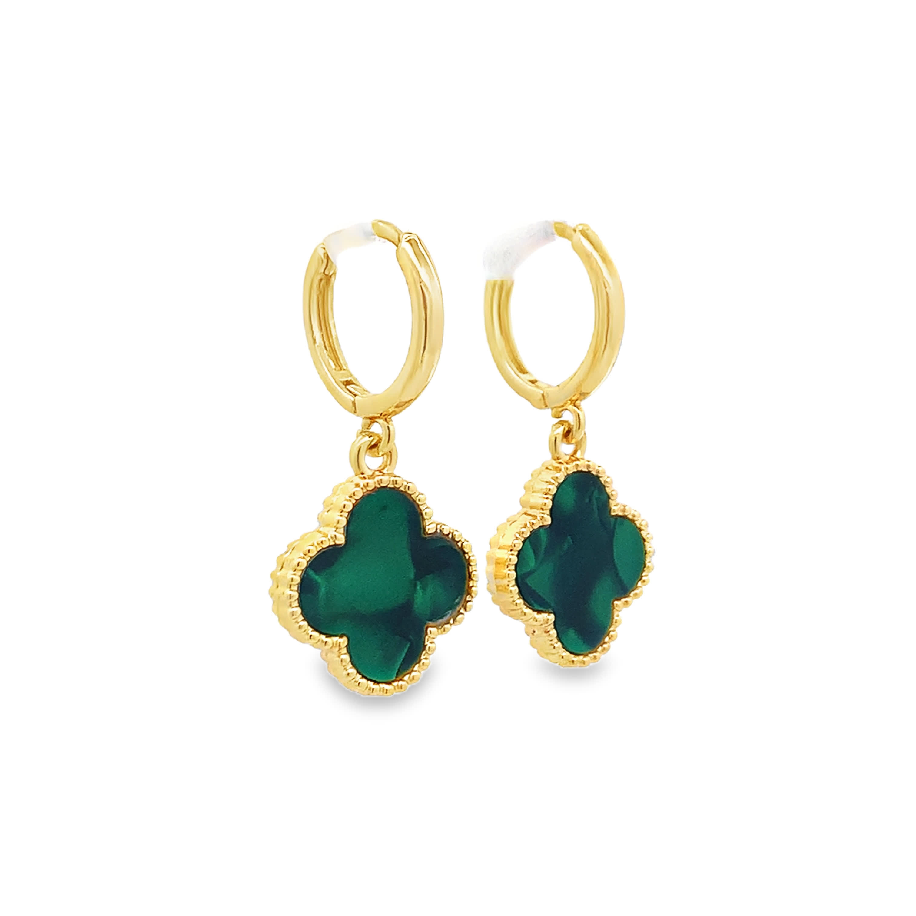 Elevate your style with these chic dangle earrings, crafted in radiant yellow gold. The design showcases a captivating round malachite cabochon, featuring rich green hues. These earrings offer a unique blend of elegance and natural beauty, perfect for adding a sophisticated touch to any ensemble.