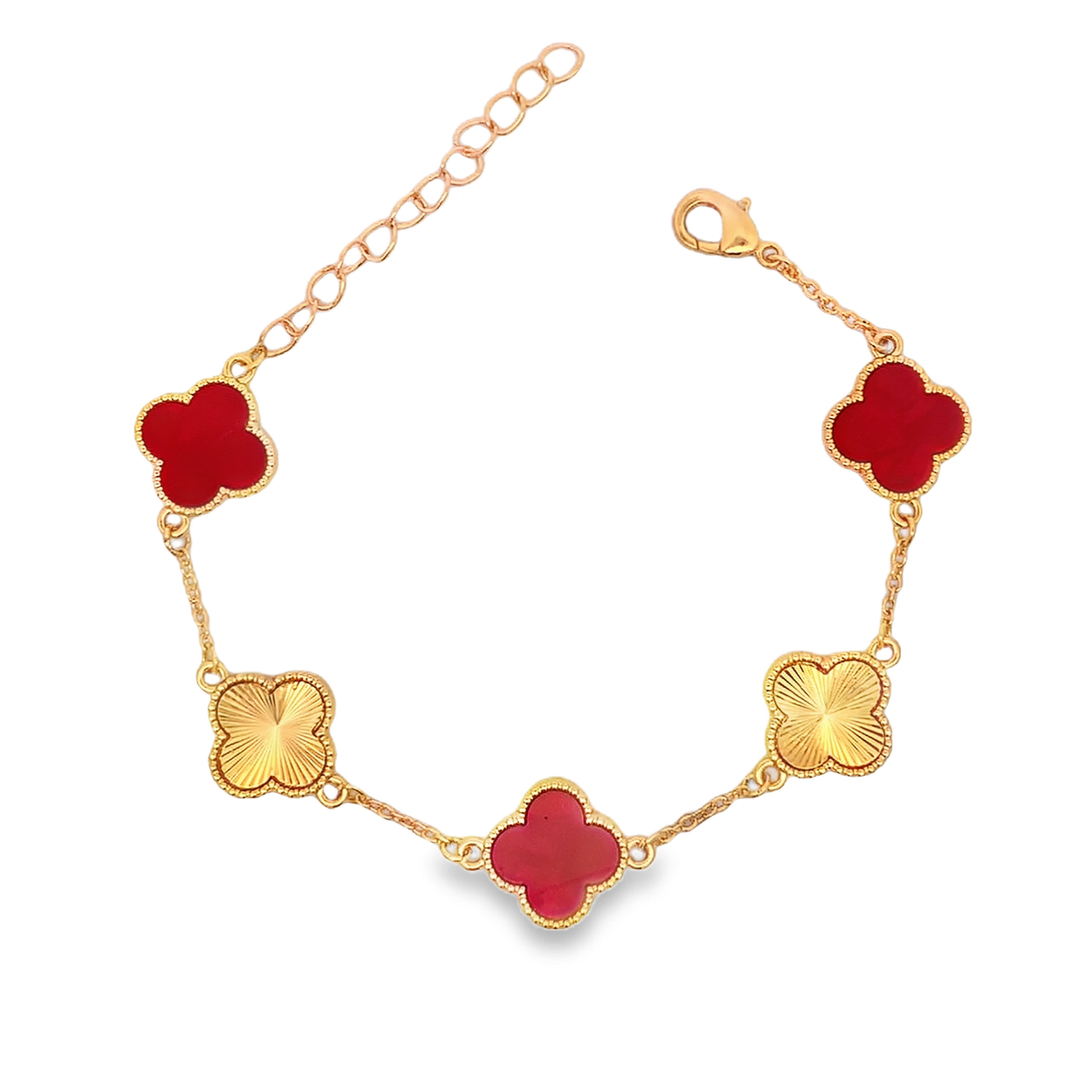 Indulge in the refined elegance of this yellow gold chain bracelet. This delicate piece features intricately designed clover motifs, seamlessly connected to form a luxurious adornment. The polished gold exudes a radiant glow, creating a timeless accessory suitable for both everyday wear and special occasions.