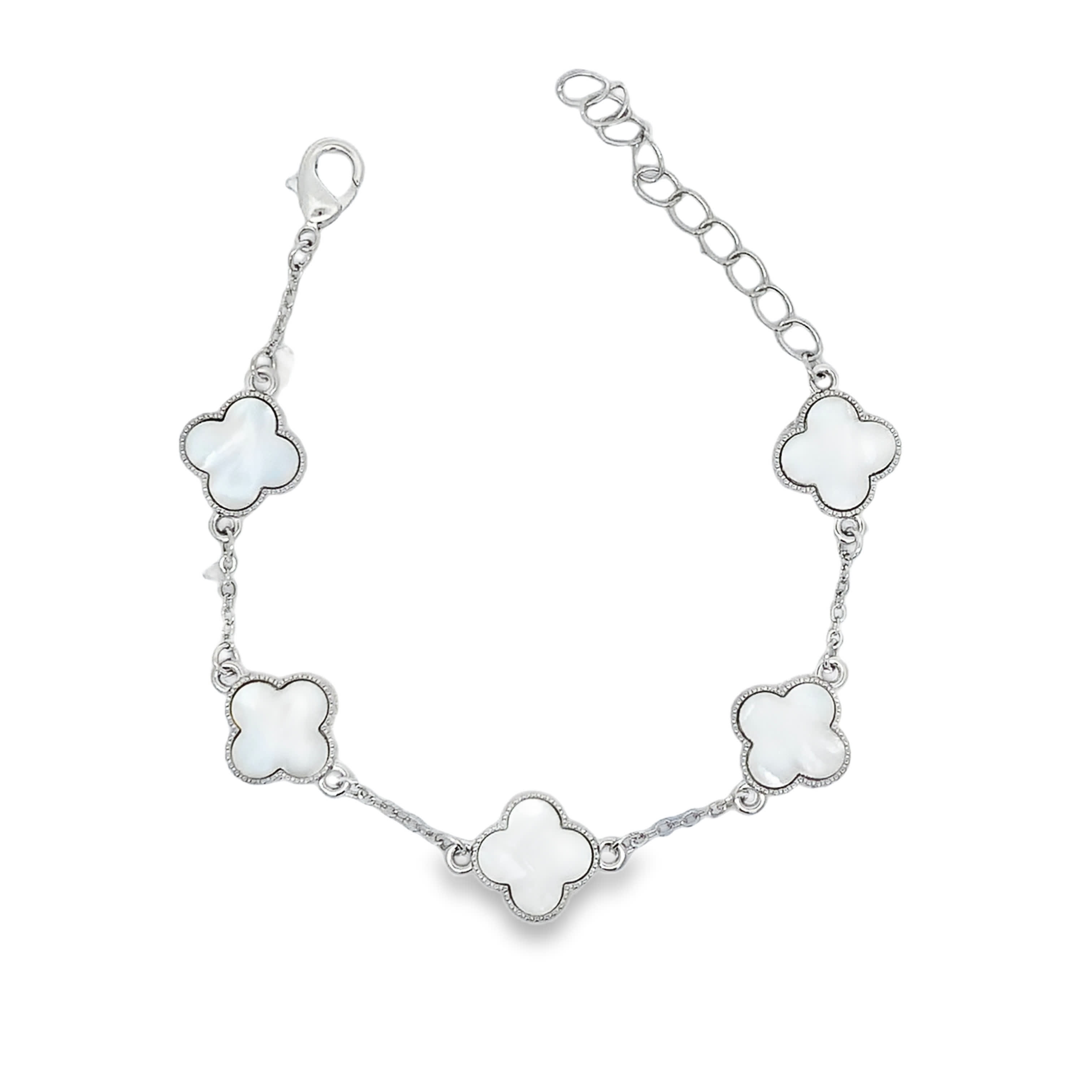 Elevate your style with this exquisite silver chain bracelet, featuring round cabochon-cut pearls. The luminous pearls are meticulously set in delicate floral-shaped frames, exuding a timeless elegance. Perfect for adding a touch of sophistication to any ensemble, this bracelet is a versatile piece that will complement both casual and formal attire.
