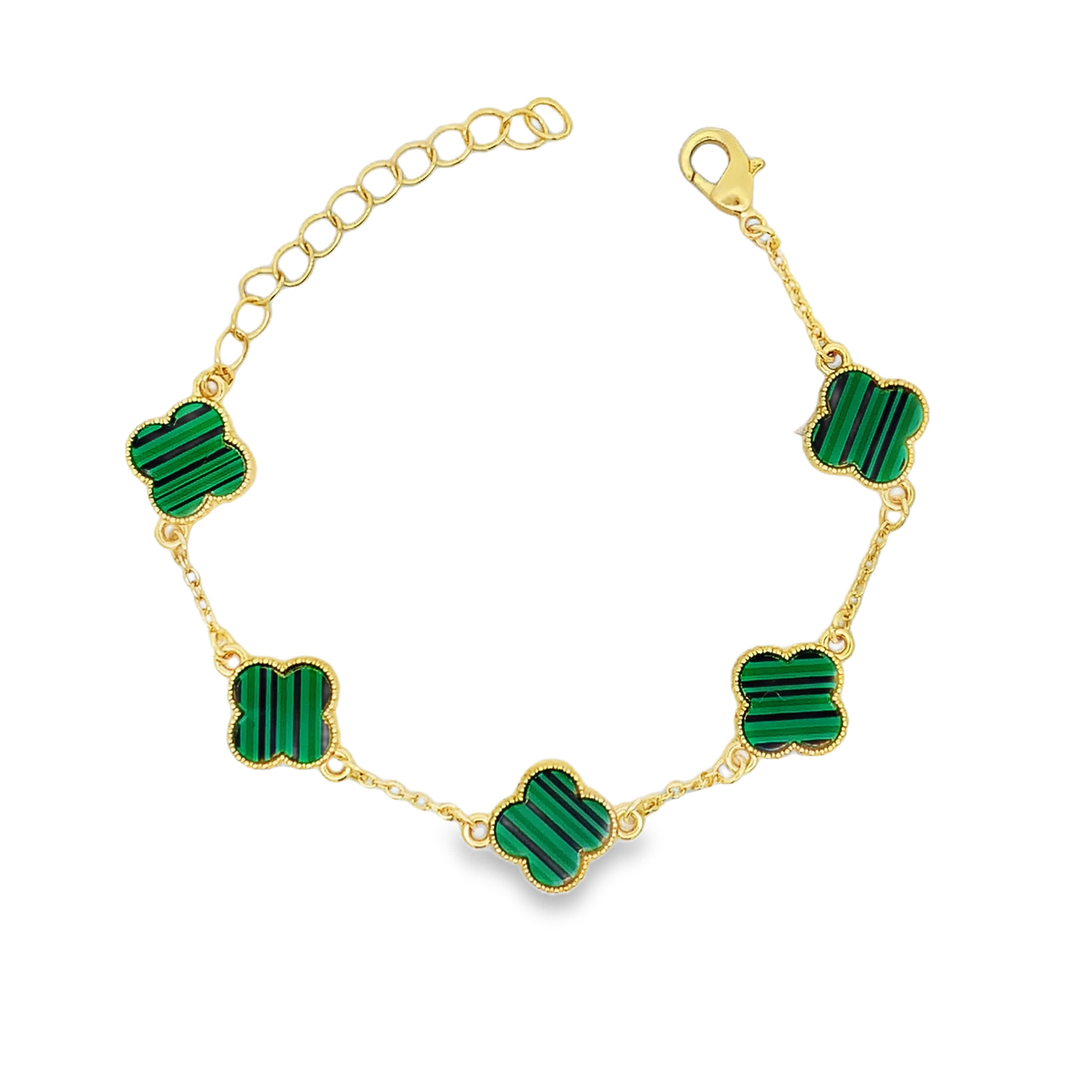Elevate your wrist with this captivating chain bracelet, meticulously crafted in radiant yellow gold. Adorned with round, cabochon-cut malachite stones, exhibiting a vibrant green hue. This bracelet seamlessly blends classic design with natural beauty, perfect for adding a touch of refined elegance to any ensemble.