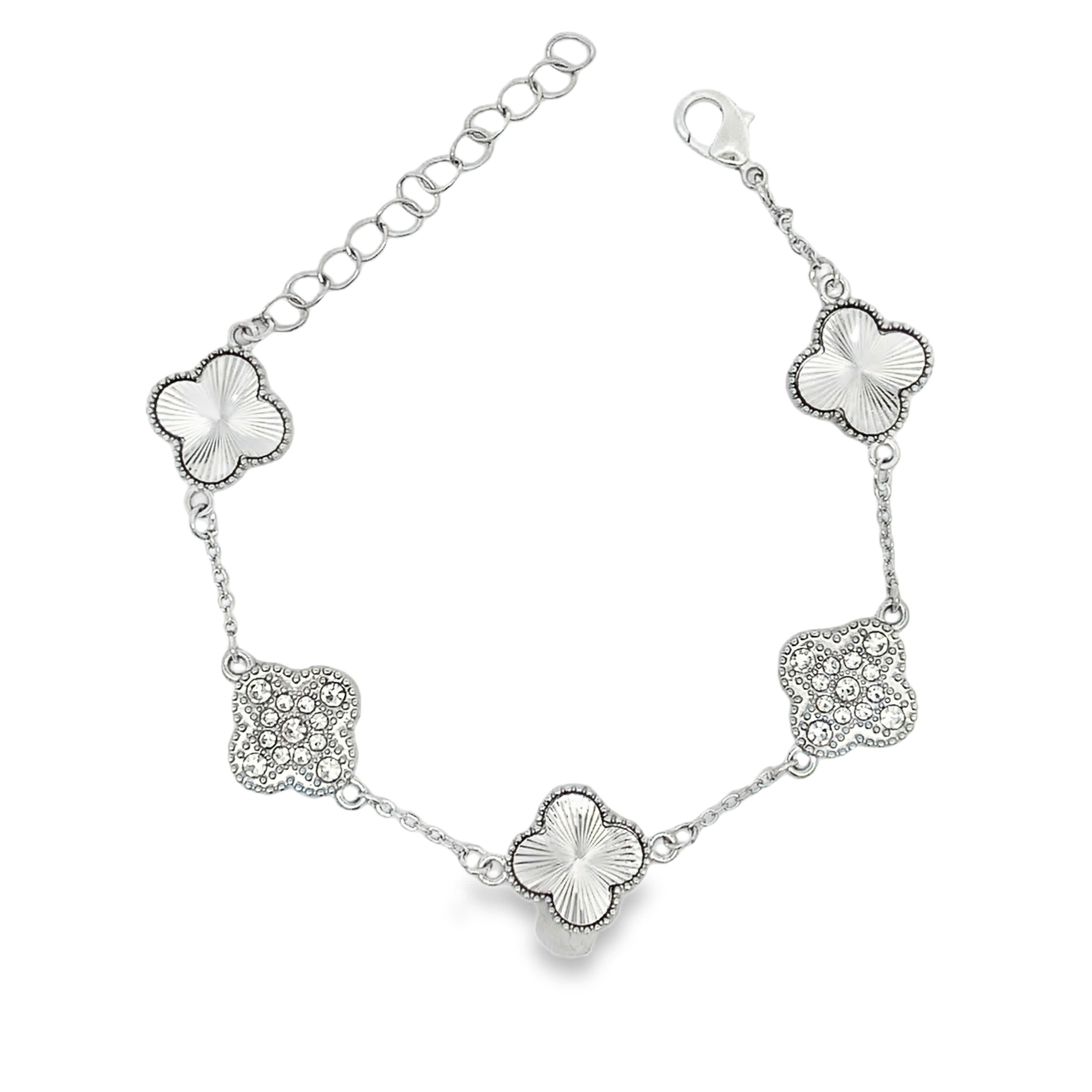 Elevate your style with this delicate silver chain necklace, featuring meticulously crafted clover motifs. Each clover is set with round brilliant cut diamonds, adding a touch of timeless elegance to this white gold toned piece. A sophisticated accessory for everyday wear.