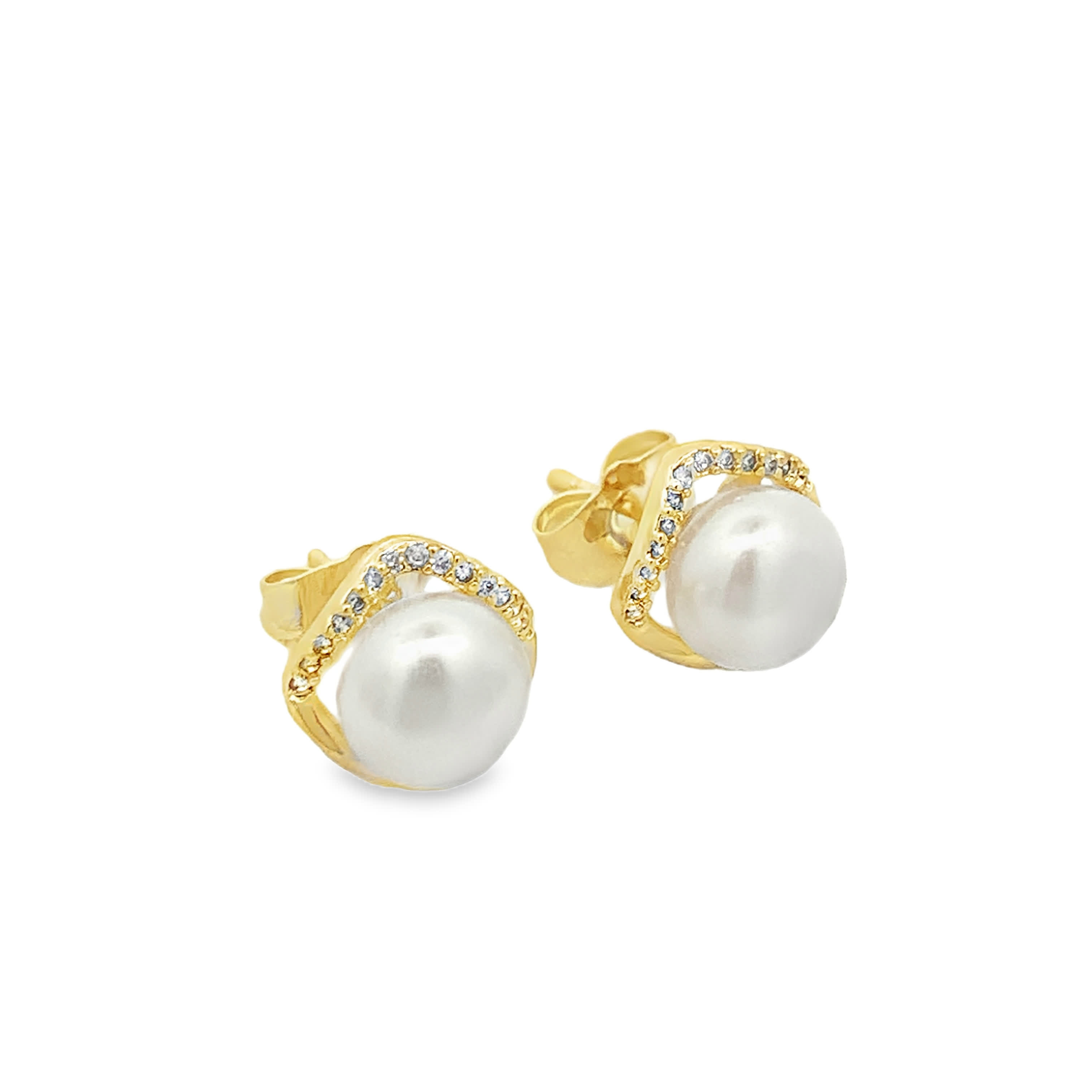 Elevate your style with these charming stud earrings, crafted in radiant yellow gold. Each earring features a lustrous, round cabochon pearl. Their timeless design ensures they will become a cherished part of your jewelry collection, perfect for both casual and formal occasions.