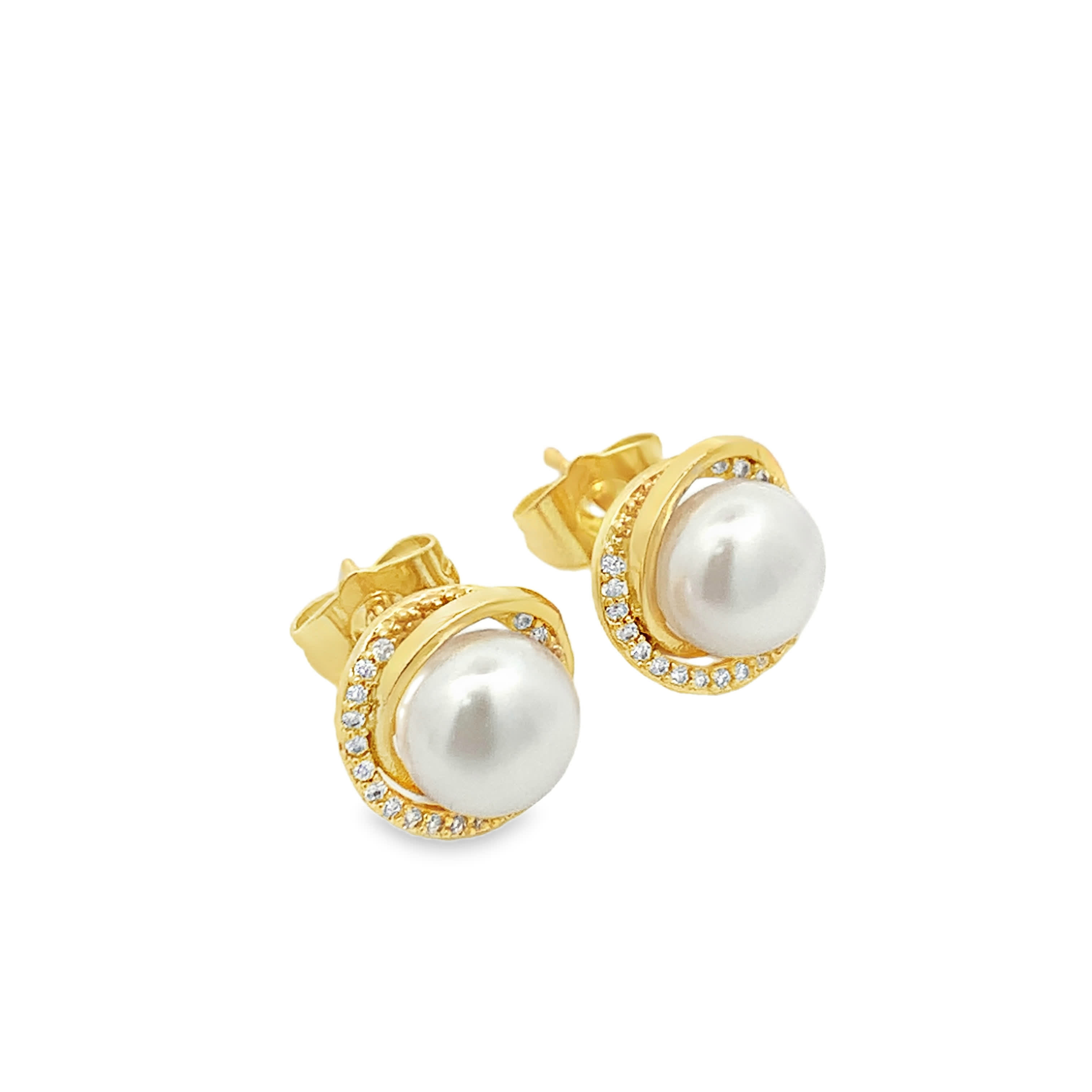 Elevate your ensemble with these sophisticated stud earrings. Showcasing a classic round cabochon pearl, exuding understated elegance. The radiant yellow gold setting enhances the pearl\\\'s luster, creating a harmonious blend of timeless design and contemporary style, perfect for adding a touch of refinement to any occasion.