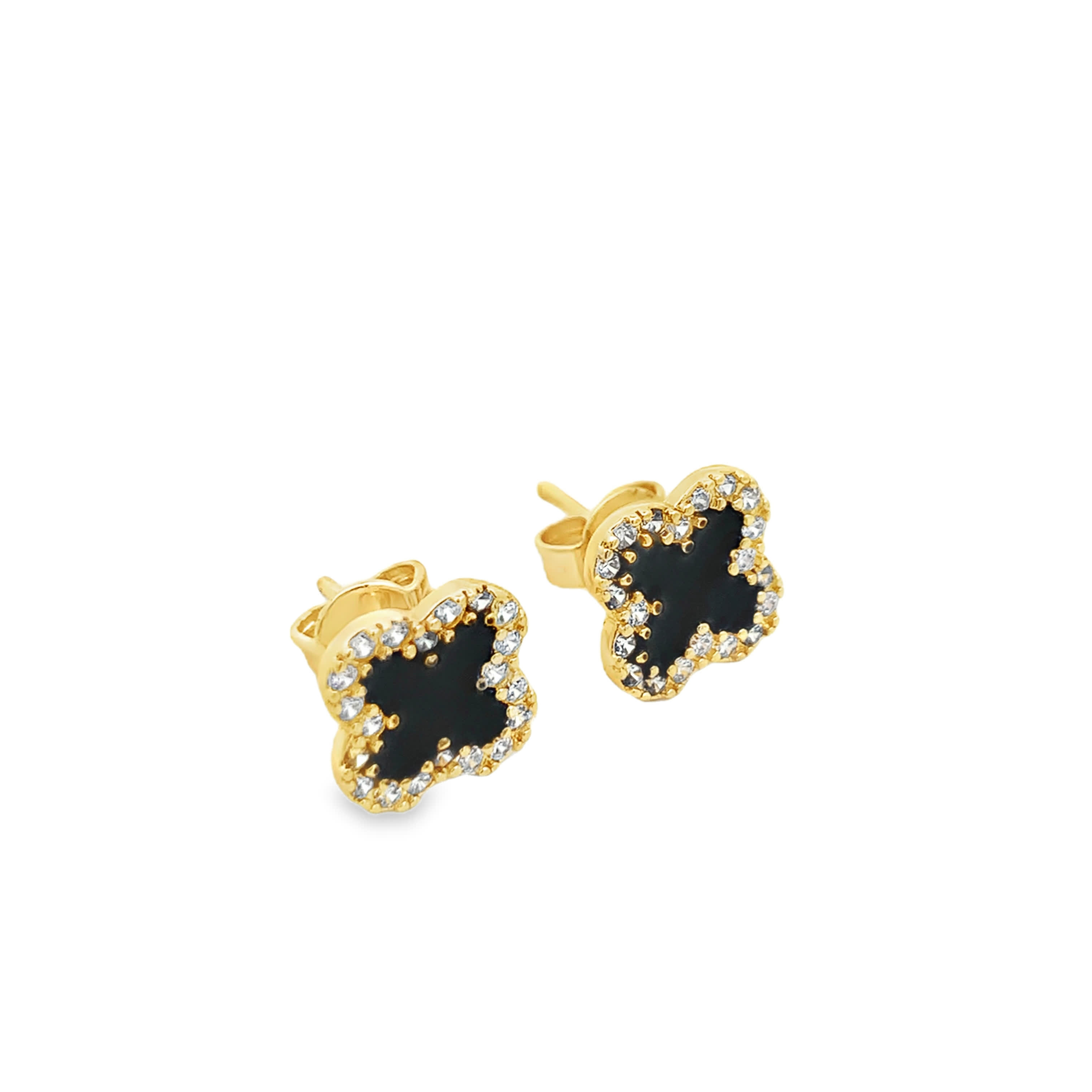 Kolczyki sztyfty koniczynki z pozłacanego metalu z okrągłymi cyrkoniami