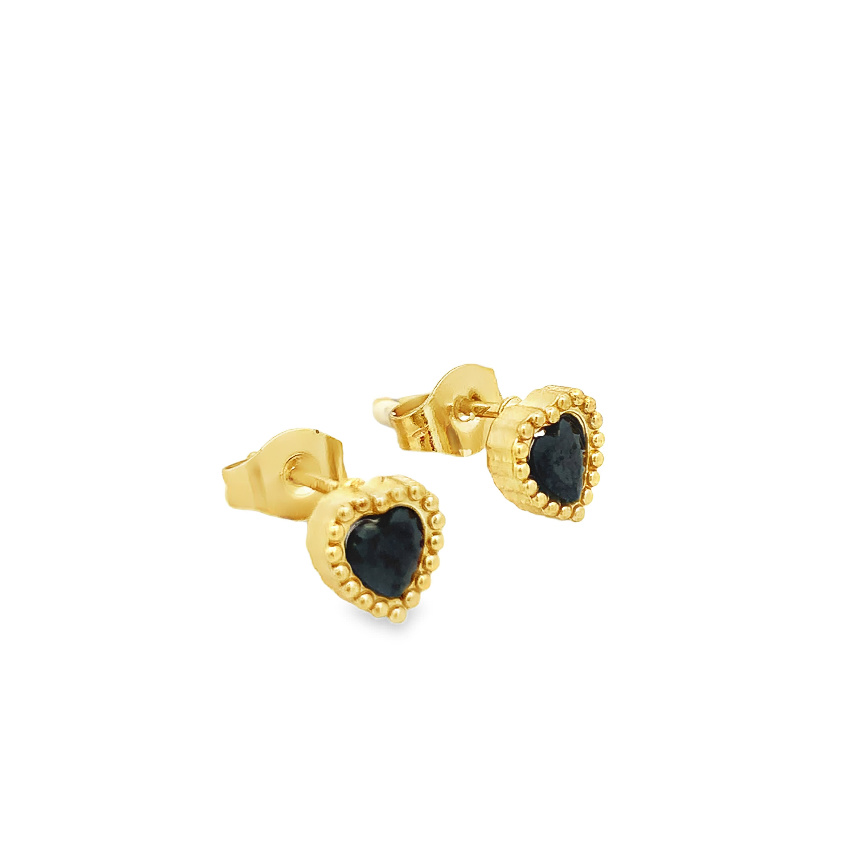Kolczyki sztyfty z pozłacanego metalu z onyksem w kształcie serca