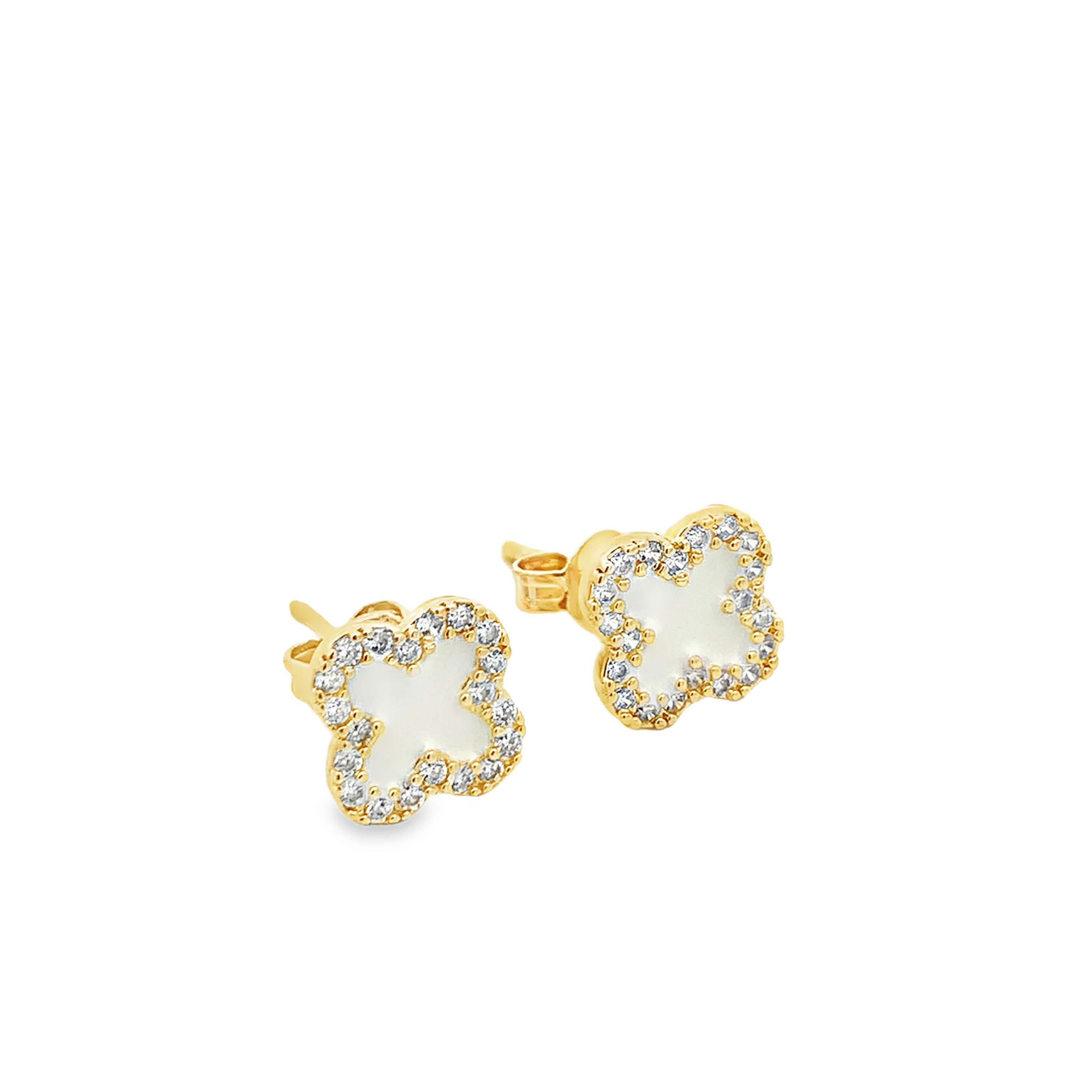 Kolczyki sztyfty koniczynki z pozłacanego metalu z cyrkoniami o szlifie brylantowym