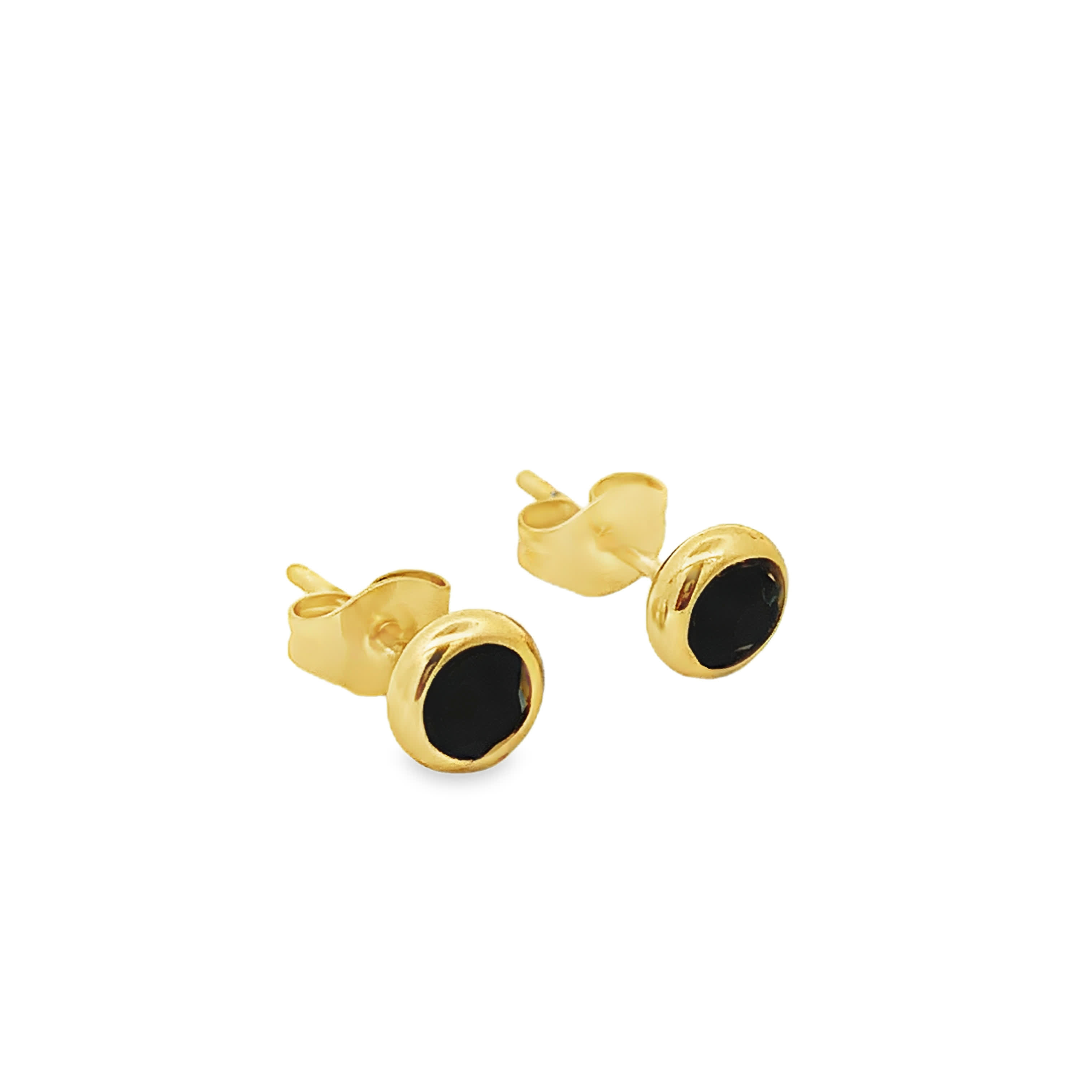 Elevate your everyday style with these classic stud earrings. Crafted in warm yellow gold, these earrings feature round cabochon-cut onyx gemstones, exuding a timeless elegance. The simple, sophisticated design makes them a versatile addition to any jewelry collection, perfect for both casual and formal occasions.