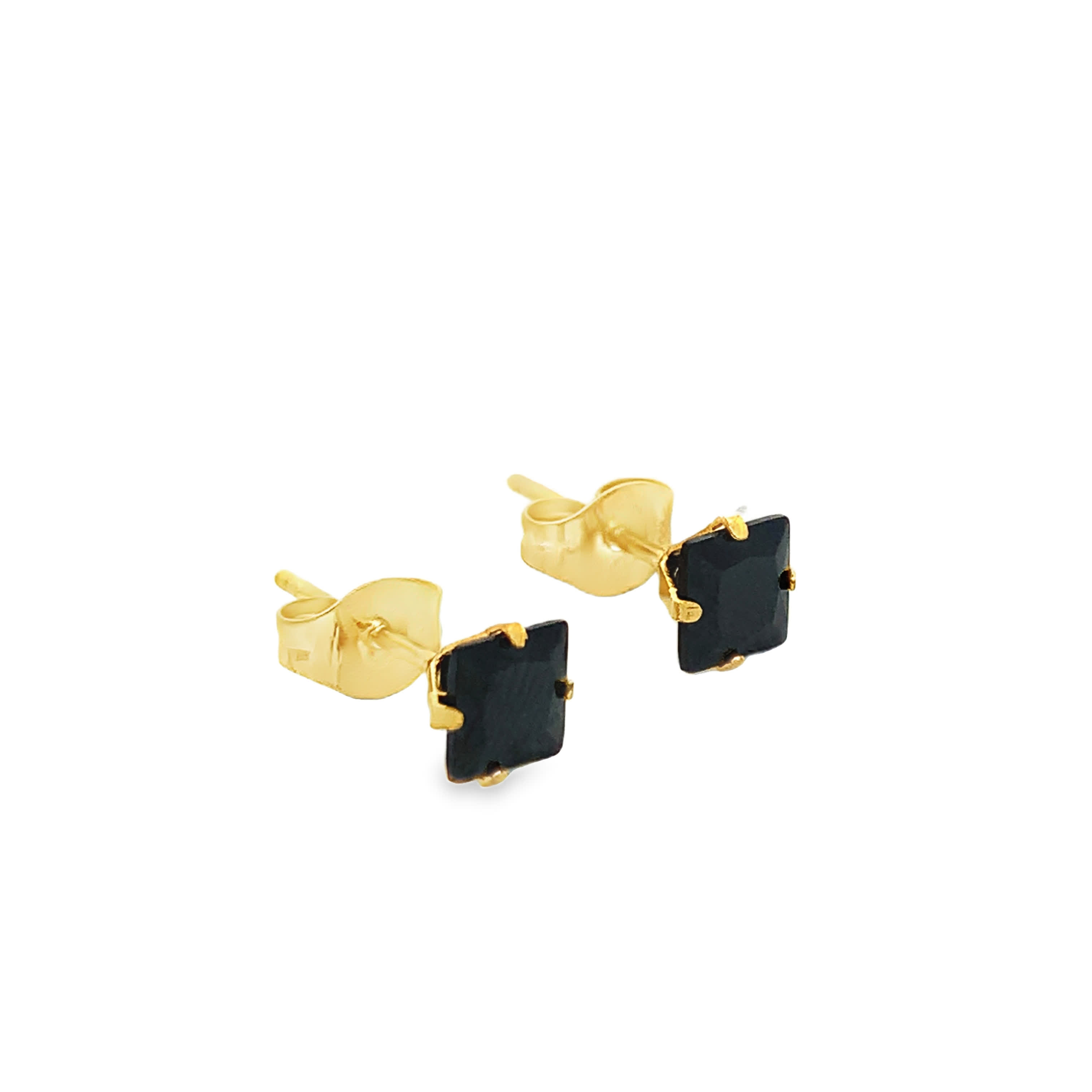 Elevate your everyday style with these classic stud earrings, crafted in radiant yellow gold. Each earring features a captivating square cabochon onyx, known for its deep black hue. The clean lines and polished finish create a sophisticated and versatile accessory, perfect for any occasion.