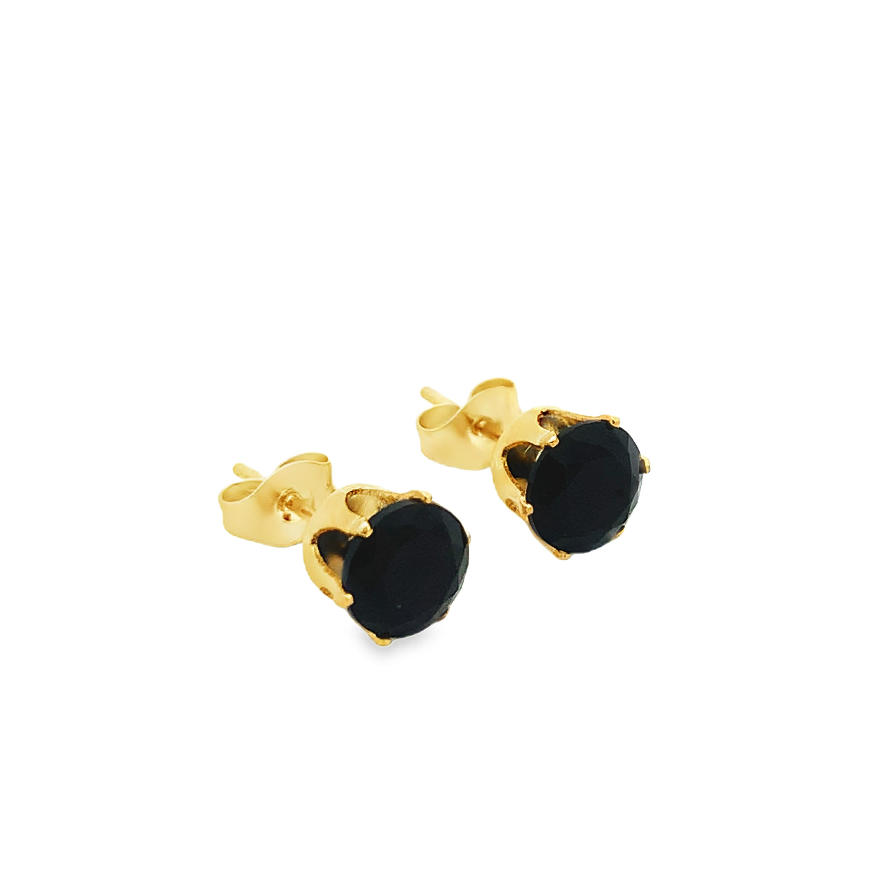 Kolczyki sztyfty ze stali złoconej z onyksami o szlifie brylantowym